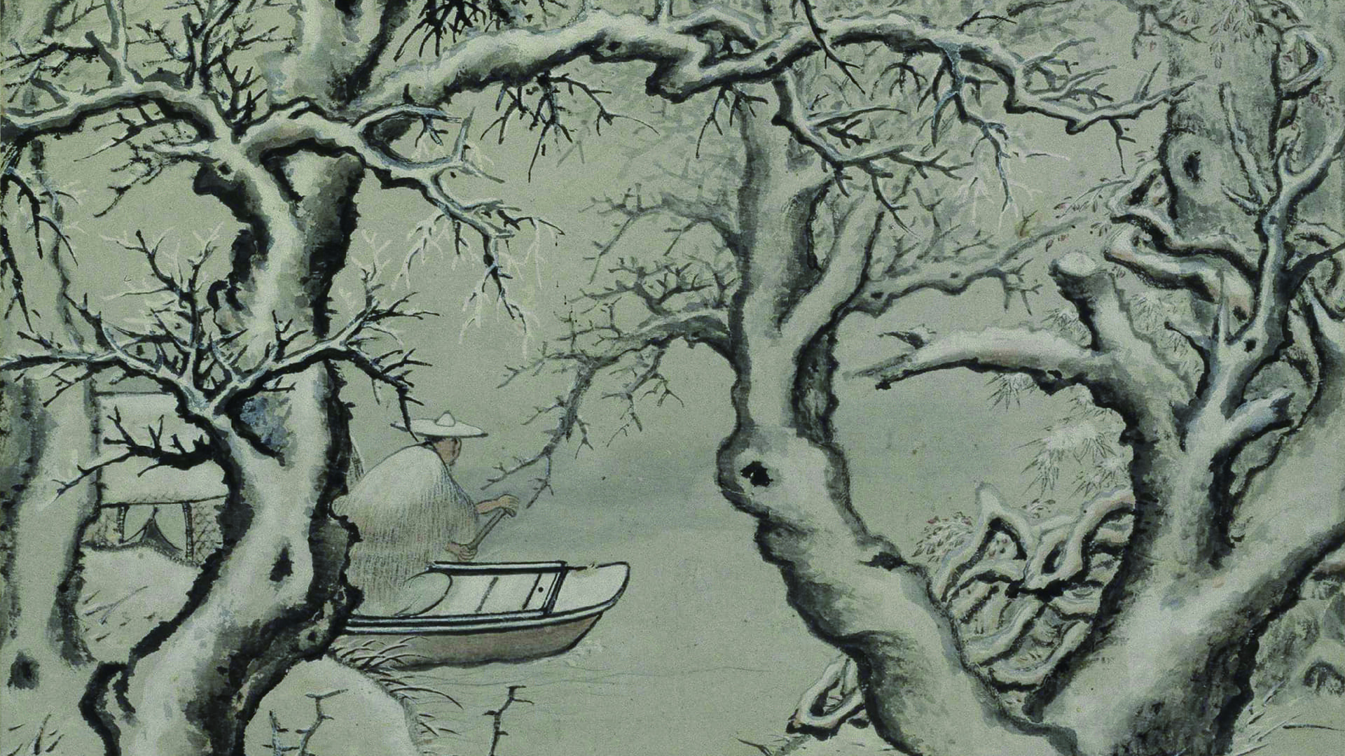 ▲ 题图 明 项圣谟 雪影渔人图纸本设色